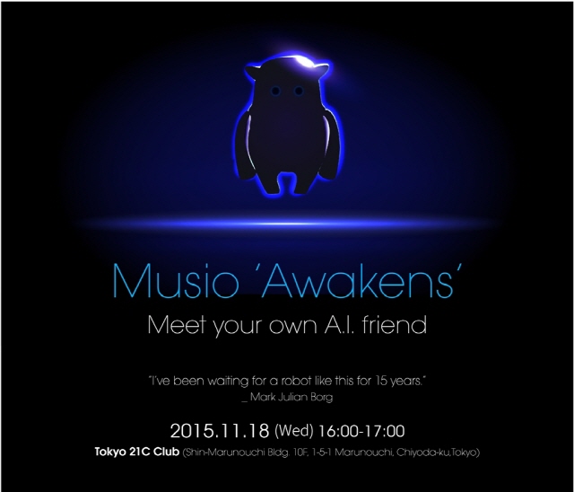 ▲ 아카가 오는 18일 일본 도쿄 21c 클럽(Tokyo 21c club)에서 인공지능 대화형 로봇 뮤지오의 제작발표회를 개최한다. 사진/아카.